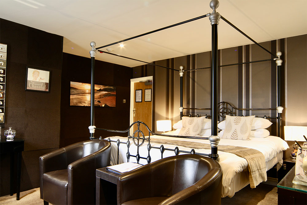 With its four-poster bed, this is truly a luxury room - and a tasty treat for chocolate lovers!