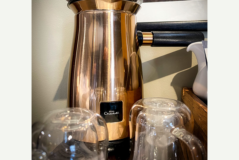 Luxuriously decorated in chocolatey tones, it’s a sumptuous and seductive celebration of chocolate. There’s chocolate hidden (and in plain view) for you to enjoy at your leisure.